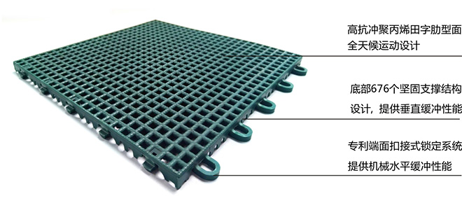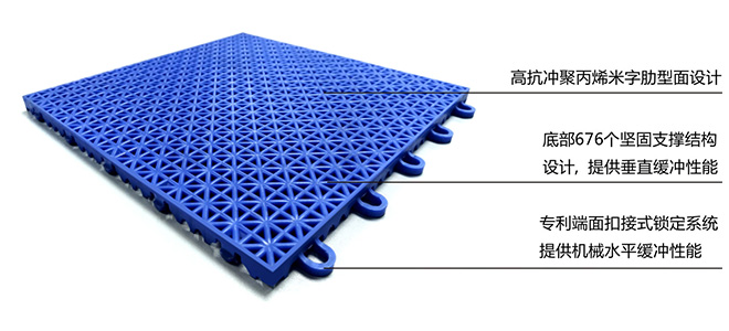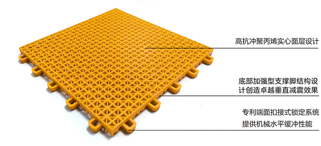 专业体育地板应最大限度地满足各种不同体育运动项目的技术特点,而尽量避免运动员随不必要的负载和消耗过多能量所应具备的性能。爱奇拼装地板达到了国际体育地板的高等标准且对各种不同的运动均具有较强的适应性。