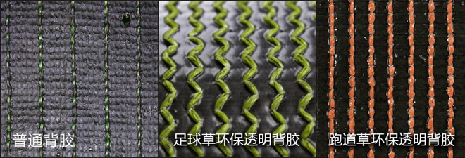 该环保人造草分为三个系列,每个系列产品均统一采用ECO环保透明背胶。