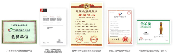 爱奇实业早在2005年便与顶尖研发团队合作,历经无数次选材、配料、试验,不断改进生产工艺,终于在2007年成功研制出新型可回收环保草,并获国家发明专利和十几项发明专利,被喻为"真正的绿色健康运动场地"。