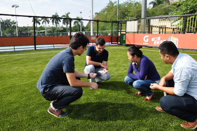 此次升级改造工程由爱奇全程负责,按足联标准进行改造升级,使用爱奇自己生产的爱奇人造草,欧洲标准、环保健康,