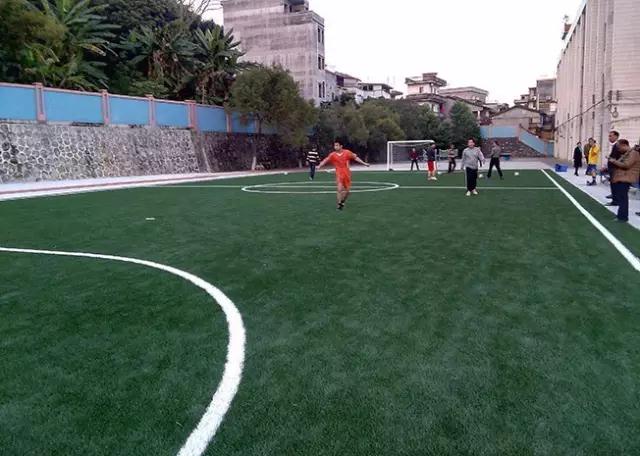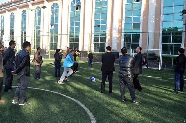 老师们现场进行了一场激励的五人足球赛,实地体验了一把专业环保草铺设的运动场。
