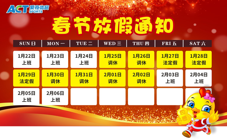 感谢大家过去一年对爱奇的支持和信赖。春节将至,爱奇实业将于2017年1月25日开始放假,2月3日(年初七)正式上班。放假期间工厂将暂停生产,所有未发货的订单都将顺延至年后发货,客服也将暂停接待工作,对此造成的不便还望大家谅解与支持!如有任何需求,均可直接咨询当地区域经理。