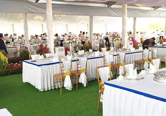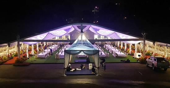 热情的8月,马来西亚皇家喜迎一场盛大的婚礼晚宴,婚礼地毯一改以往红地毯风格,摇身变成绿草如茵的自然风,两万多方的爱奇草配合高贵的皇家蓬屋以及洁白餐桌,多彩的鲜花, 再加上灯光,如童话般的场景,现场让人如痴如醉,羡慕不已.……
