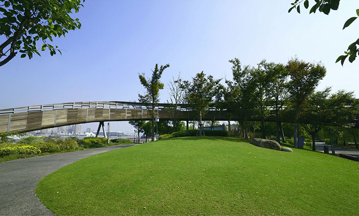 占地29公顷的世博公园,整体规划犹如精致的“中国扇”, 被称之为世博园区的“绿肺”。