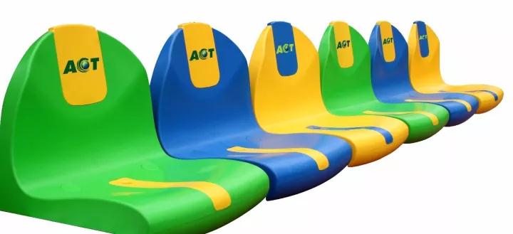 爱奇注塑广告牌座椅:采用高密度聚丙稀,具有阻燃、抗污、防褪色的优点。