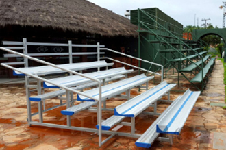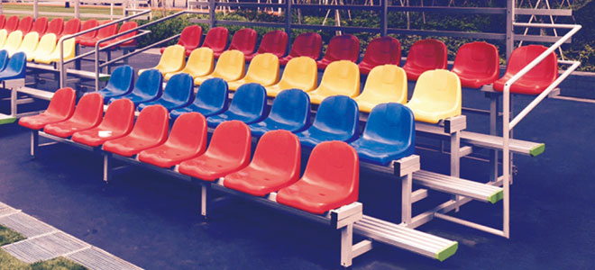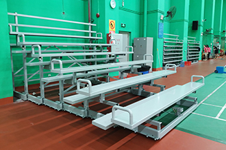 爱奇简易看台结构灵活多变,产品设计由多种不同的层高、层宽来满足场地环境和观众视线要求;用户可根据需求灵活选择双踏板设计、伸缩雨蓬、脚轮以及独特的座椅搭配,目前已广泛应用于学校、社区及各类体育场馆。